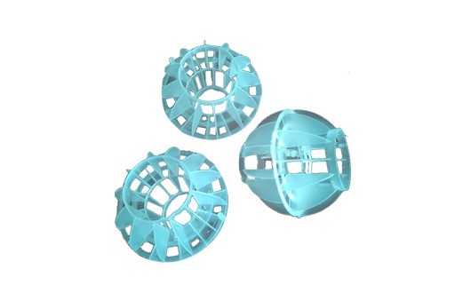 聚丙烯空心球气速高,叶片多,阻力小;比表面积大,可充分解决气液交换;具有阻力小操作弹性大等特点。广泛应用于除氯气、 除氧气、除二氧化碳气等环保91粉色视频中。采用聚丙烯塑料制成球状,在球中部沿整个周长有一道加固环,环的上下各有十二片球瓣, 沿中 心轴呈放射形布置,适用于二氯化碳脱气塔,接触反应塔等装置。