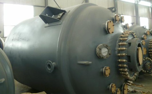 6、搅拌器的安装:a、先将搪玻璃闭式反应釜的搅拌器放入罐内(罐底铺设软垫),然后将罐盖吊至预定位置,同时将密封件套入搅拌轴,再将搅拌器提升与减速机输出轴连接,锁紧防松装置。b、调整搅拌轴与密封件的同轴度及垂直度,达到技术规定的要求后使搅拌轴缓慢转动,当运转灵活,无异常现象时,才准再试开启电动机按纽,直至运转正常(此段时间不宜过长)。