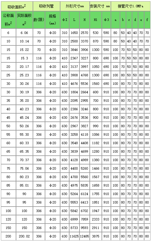 石墨改性聚丙烯吸收器系列规格对照表